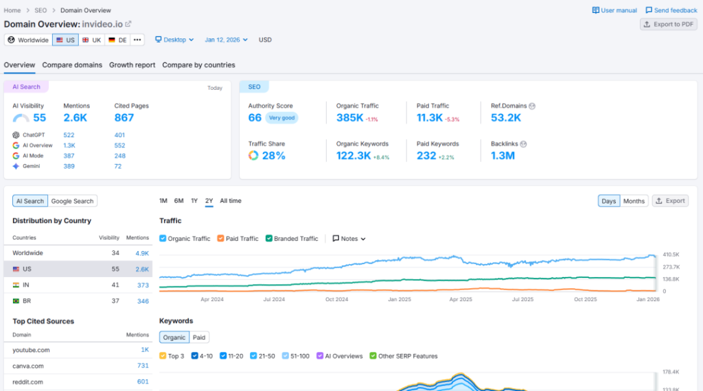 Recent data reveals that InVideo has hit a staggering $70 million in Annual Recurring Revenue (ARR). With nearly 8.9 million monthly visits, this platform isn’t just surviving; it is dominating.