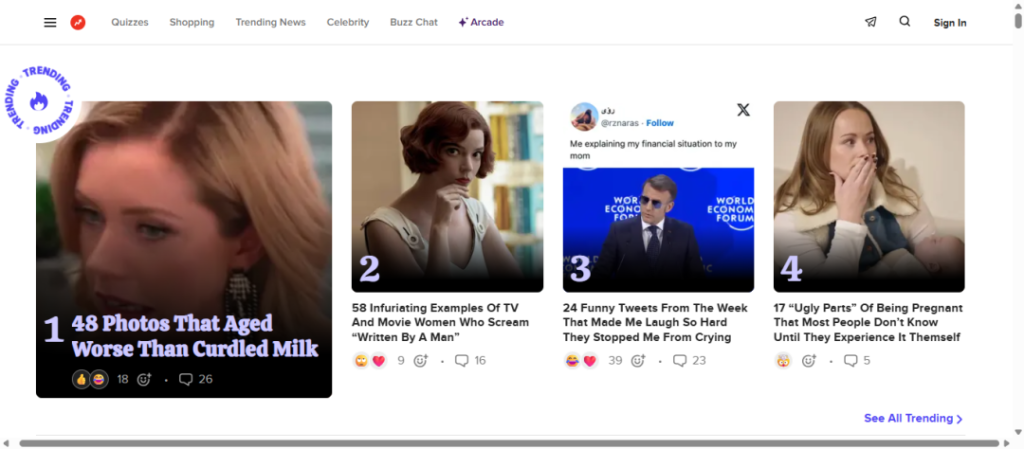 After shutting down BuzzFeed News, the site shifted entirely toward entertainment and commerce. While this improves short-term profitability, it may weaken long-term brand authority.