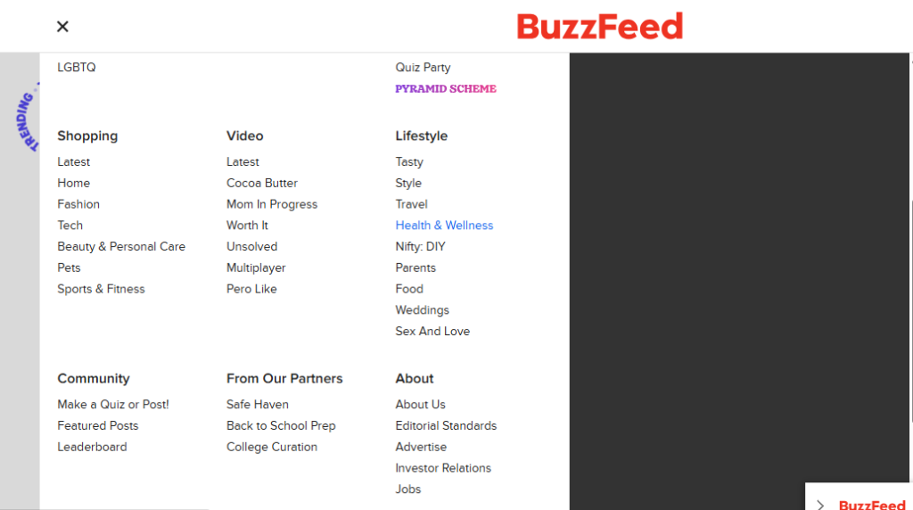 BuzzFeed’s homepage uses an infinite-scroll layout, which encourages continuous consumption.
