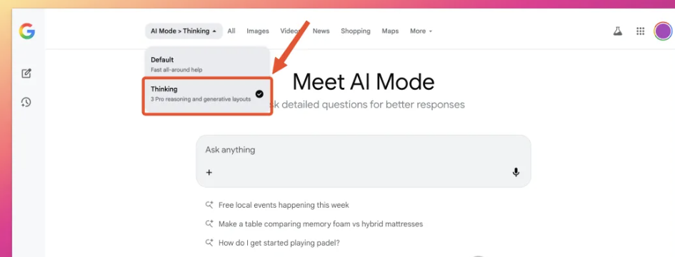 - How to Verify Access: Open the Google Search page and look at the right side of the input box to enter “AI Mode”. If you can switch models in the top left corner, you have access.